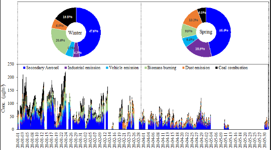 Highly time-resolved chemical characterization and source apportionment of PM2.5 in Xianghe using a hybrid environmental receptor model.