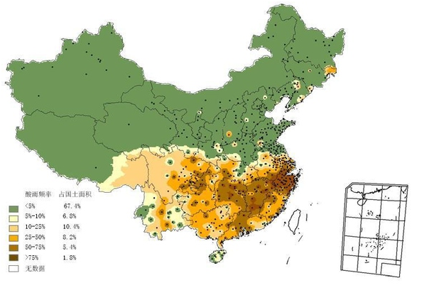 3. 自上世纪80年代中国有相关记录开始,中国传统南方酸雨区并无太大变化,但有向北方拓展的趋势